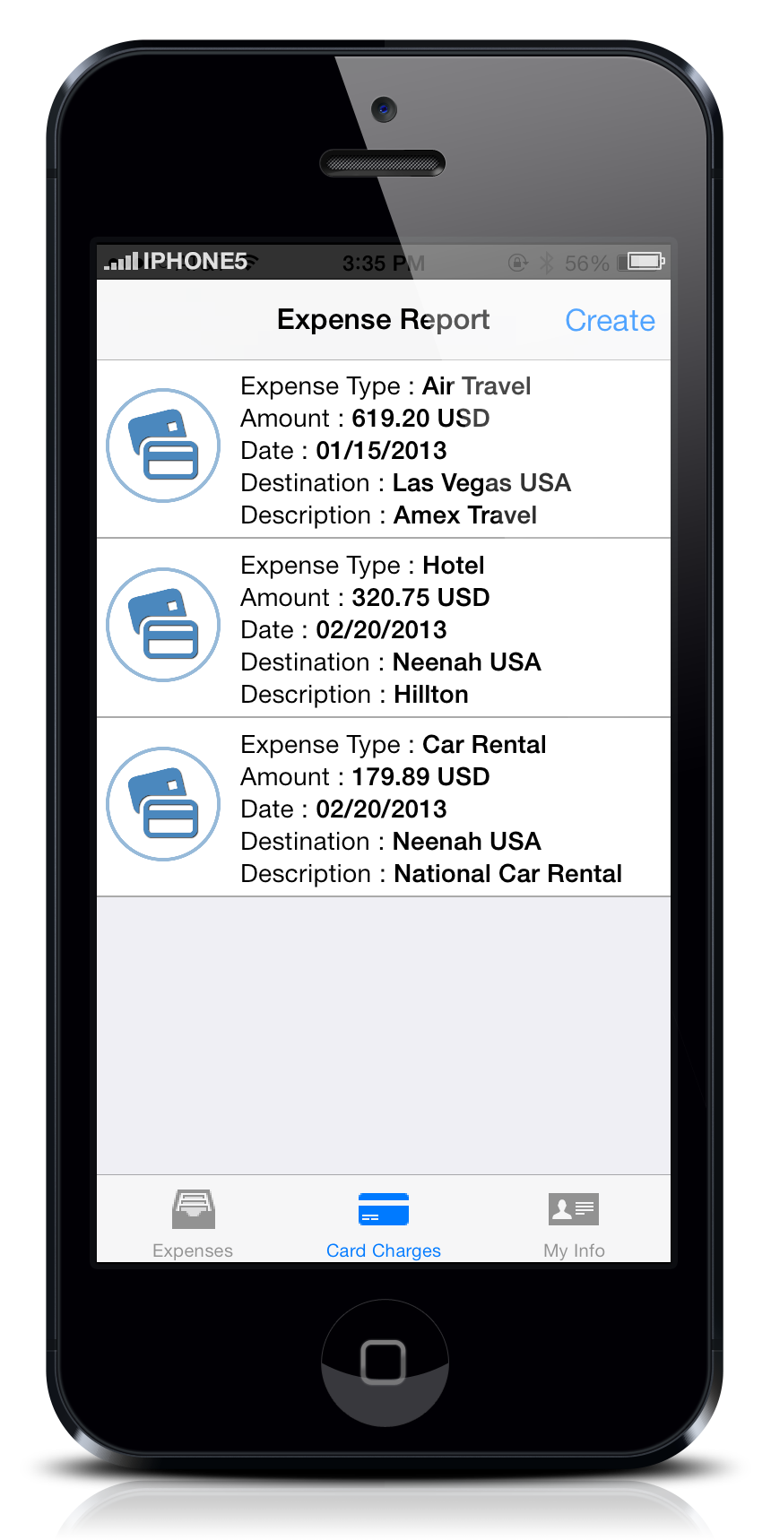 mTravel makes it easy to achieve the same results. Users can capture transaction data at the time they incur an expense. Cash expenses (such as tips or taxi fares) can be added quickly to an expense report, receipt images can be captured with the phone’s camera and credit card charges are automatically available in the mobile application for reporting.